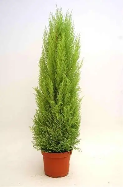 Одно из райских деревьев Кипарис (Cupressus Goldcrest Wilma). Как и любой другой кипарис, Cupressus Goldcrest Wilma выглядит как миниатюрная вечнозеленая елочка с узкими листочками.Причем цвет у него ярко зеленного цвета и на солнце края кипариса отдают золотистым отливом.  В Европе он считается самым популярным декоративным растением для офиса. А в Азии его сажают в каждом дворике, так как это благородное растение олицетворяет долголетие. Считается также, что энергетика кипариса избавляет от всех